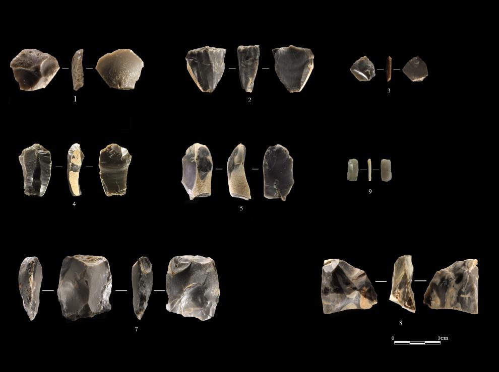 青池遺址第I發(fā)掘區(qū)出土的打制石器(舊石器時代)。天津市文化遺產(chǎn)保護(hù)中心供圖