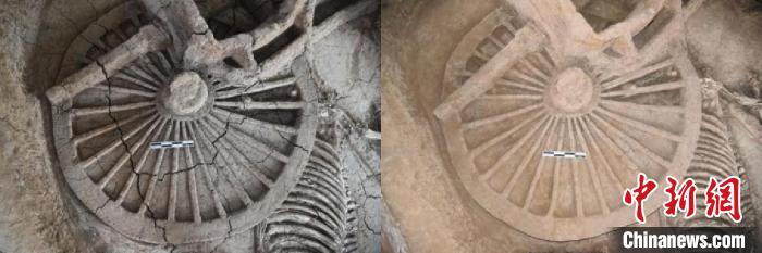 圖為山東曲阜車馬坑遺址修復(fù)前后對比圖。河南省文物考古研究院 供圖