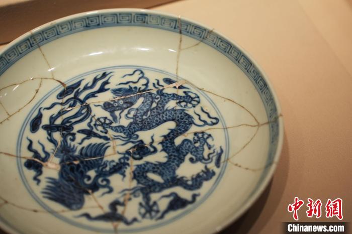在展覽中,除精致的成品瓷外,一些因瑕疵無法面世的碎瓷片也講述著御瓷故事。“這件器物的器型和發(fā)色都非常好,但因?yàn)榘盐遄埉嫵闪肆Ρ悴荒艹手劣埃T如此類任何細(xì)微的差錯(cuò)都是不被接受的?!睋?jù)李雪蕾介紹,明清御窯對(duì)于龍紋有嚴(yán)格的規(guī)定,尤其是明代早中期,龍紋只許皇家使用,而五爪龍只供皇帝使用,出于御窯嚴(yán)苛的挑選制度和規(guī)范流程,明代早中期的淘汰品為避免流入民間都被打碎就地掩埋。