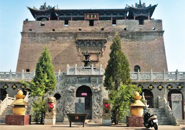 護城樓位于河曲縣文筆鎮(zhèn)北元村北城墻外10米處,明代建筑。據(jù)城樓匾額題記載,建于明萬歷年(公元1573年至公元1620年),重修于1996年4月14日。南北長27米,東西寬21米,占地面積567平方米。坐北朝南,為二層磚木結(jié)構(gòu)。一層臺基高3.5米,中部設(shè)拱券門,前有石砌臺階相連,券門門額石匾書“鎮(zhèn)虜”二字。匾額上砌垂花門樓,檐下設(shè)三踩單翹斗拱。劵門兩側(cè)設(shè)拱形小窗。二層四周設(shè)女兒墻,有玉皇閣一座,建于清乾隆三十一年。殿身面寬三間,進深四椽,單檐硬山頂,五檁無廊式構(gòu)架,斗拱一斗二升交麻葉。東西為鐘樓、鼓樓。1984年河曲縣人民政府公布其為縣級文物保護單位;2007年6月6日被忻州市人民政府公布為第一批市級文物保護單位;2016年6月6日被山西省人民政府公布為第五批省級文物保護單位。