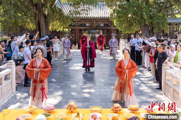 中新網(wǎng)太原8月5日電(高雨晴 胡健)古老而盛大的“圣母大祭”傳統(tǒng)禮儀表演依循傳統(tǒng),莊嚴肅穆,仿佛在訴說著千年歷史;水鏡臺上“民樂纏綿”,精致華麗的東方樂器,靈動變換的悠揚曲調(diào),在千年古建園林間回響;原創(chuàng)話劇《唐風晉韻話晉祠》,讓民眾沉浸式體驗千年晉祠歷史……
