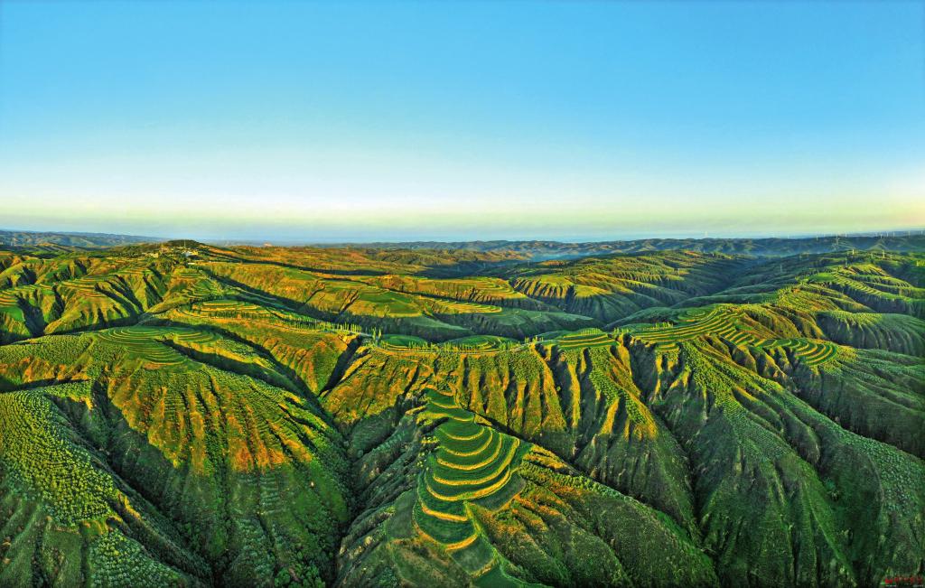 站在趙家溝的山頂看日出是一件賞心悅目的事情。8月4日早晨,當(dāng)朝陽(yáng)從東方的山巒噴薄而出,在萬(wàn)丈霞光的映照下,莽原織繡,梁峁吐翠,田疇如畫,生機(jī)勃發(fā)。居高臨下看到的夏日晉北高原美景妙不可言,使人陶醉。