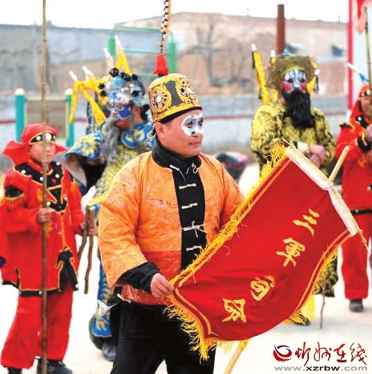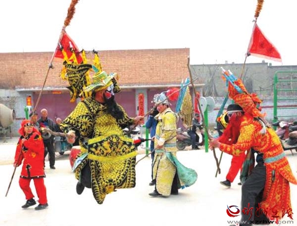 把古代戰(zhàn)爭場面演練成劇,表現(xiàn)多為騎兵對戰(zhàn),故稱為大馬社火。今年春節(jié)期間,定襄北社西村大馬社火被錄制成視頻上傳后,成為最受歡迎的鬧紅火視頻之一,人們紛紛轉(zhuǎn)載,贊不絕口。剛剛過去的元宵節(jié),大馬社火也是定襄鬧元宵不可或缺的重頭戲,北社西村眾多村民自發(fā)組織起來耍社火,表達祈福驅(qū)邪,對風調(diào)雨順、豐產(chǎn)增收的祈愿,形成了一道獨特的傳統(tǒng)民間文藝風景,還吸引了山西省民間文藝家協(xié)會專家現(xiàn)場指導,舉行了民間民俗文化調(diào)研座談會。