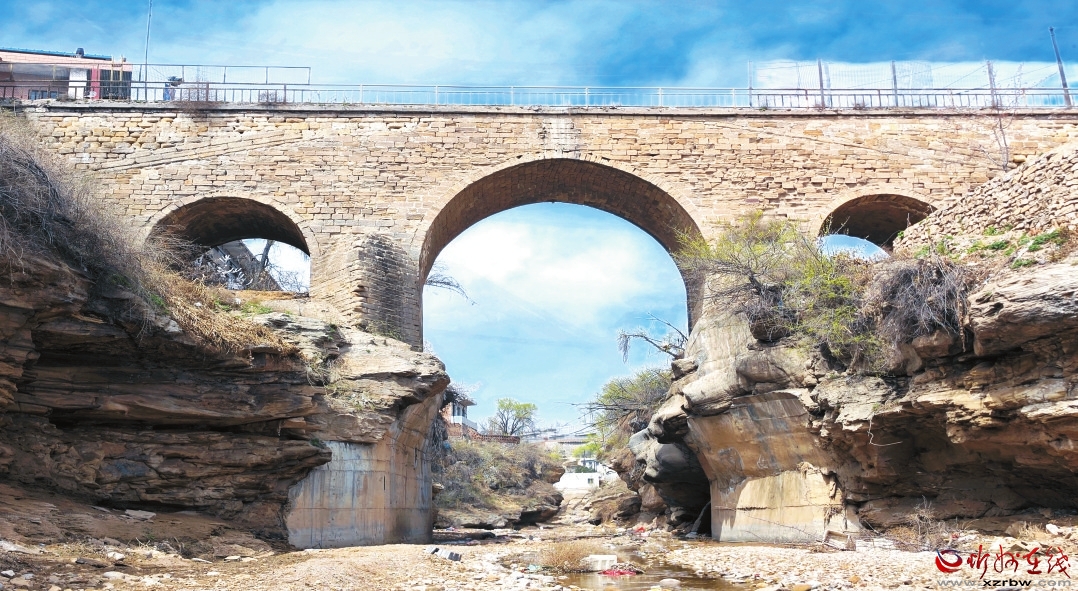 “橋頭”之名,或因村東朱家川河上的古橋——普濟(jì)橋。普濟(jì)橋俗稱“橋頭橋”“五孔橋”,位于橋頭村東,南北向跨于朱家川河上,是保德縣最大的石拱橋。明清兩朝,河上大橋多次重建,現(xiàn)存為清同治年間重修,其規(guī)制可與馳名天下的趙州橋相提并論,也是五孔,全長四十余米,寬五米多,橋頂離水面十余米。昔年橋上石欄護(hù)板俱全,20世紀(jì)60年代朱家川河突發(fā)洪水,水漫橋頂,欄桿護(hù)板被沖毀,所幸大橋安然無恙。