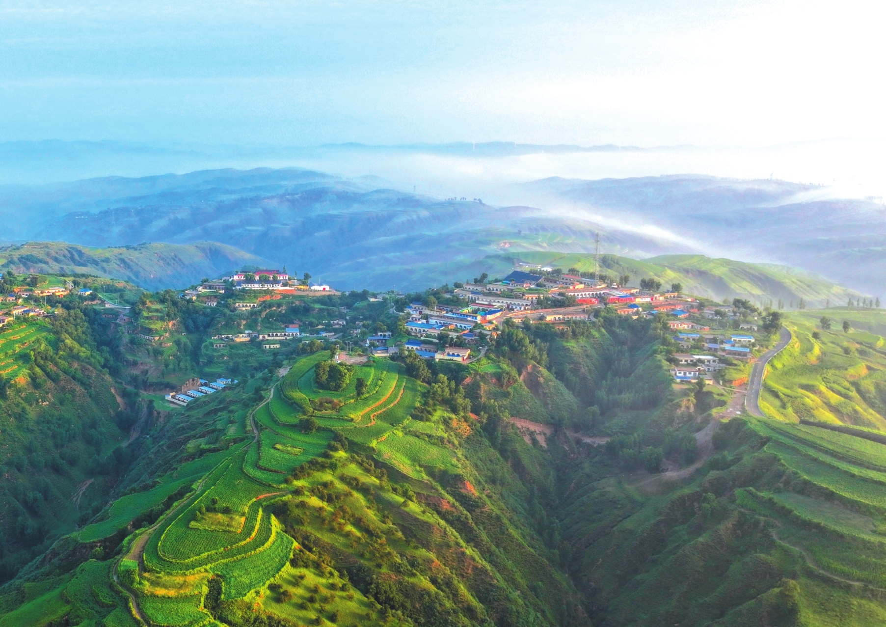 顧大明對(duì)河曲縣傾力開(kāi)發(fā)翠峰山旅游資源、打造趙家溝寫生基地深表欣慰。今日翠峰山松柏蒼郁、群峰拱峙,登頂俯瞰,晉西北黃土高原地貌盡收眼底,雄渾氣象令人頓生“會(huì)當(dāng)凌絕頂”之慨?!斑@里不僅有厚重的黃土,更有勤勞勇敢、世代守護(hù)家園、將荒原變綠地的人們。”他激情潑墨,將壯麗風(fēng)景與奮斗身影一并融入筆端。