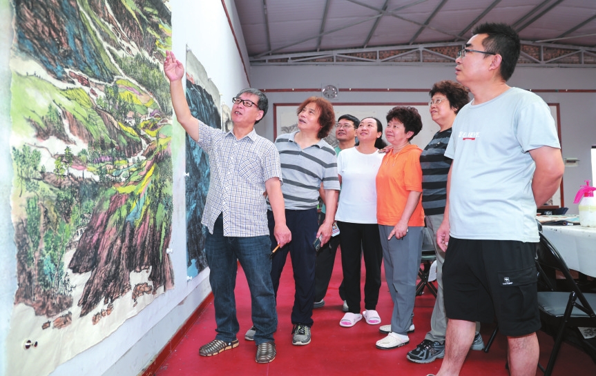 連綿的山巒、錯(cuò)落的民居、獨(dú)特的虎斑地貌、古樸的窯洞與層疊的梯田在藝術(shù)家筆下一一蘇醒。陜西女畫家祝秀琴初次來(lái)到趙家溝便被深深吸引:“這里村落風(fēng)貌保存完好,老樹(shù)、干柴、石頭皆是風(fēng)景,處處入畫?!痹谒壑?,趙家溝不僅擁有獨(dú)特的自然稟賦與豐富的旅游資源,其寫生產(chǎn)業(yè)鏈的完備更令人贊嘆——從食宿安排到寫生用具,從戶外寫生點(diǎn)到室內(nèi)畫室研討,一應(yīng)俱全。