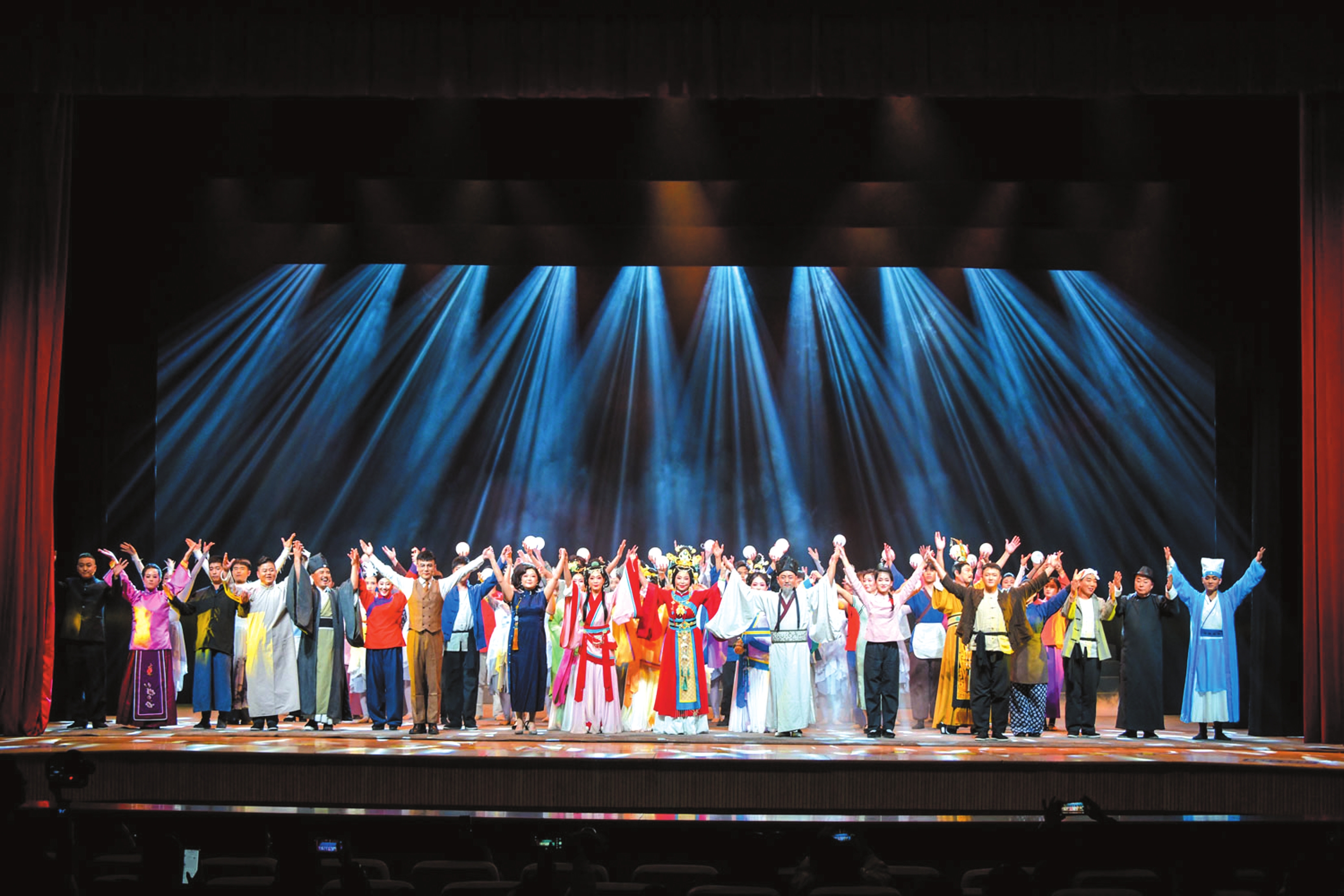 “唯美空靈,耳目一新,一看就是年輕人的創(chuàng)意!” “表演形式豐富,呈現(xiàn)內(nèi)容深刻,沒想到在忻州還能看到這么高級的舞臺劇!” “臺上人物那么多,但一點也不亂,能讓人靜下心來看進去,夠味!” …… 11月16日—18日,新編文化旅游演藝節(jié)目《秀容千秋頌》在忻州劇院首演。這部由山西省文化產(chǎn)業(yè)發(fā)展專項資金資助、忻州文化研究院直屬的忻州市二人臺劇團有限公司精心打造的大型文旅劇,現(xiàn)場獲得一波又一波熱烈掌聲的同時,收獲了眾多觀眾意猶未盡的好評。 透過這場傾全團之力打造的劇目,我們隱約看到,作為我市文化傳播的重要力量,二人臺劇團在傳承地域文化、豐富群眾精神生活方面守正創(chuàng)新,正積極探索傳統(tǒng)藝術與現(xiàn)代需求融合發(fā)展的新路徑。 無形之魂化為有形之景 潔白的紗幕,隔開了舞臺與觀眾。彩墨暈染之間,一把琵琶,仿佛想要訴說些什么。當這絢麗唯美的畫面以多媒體的手法投影在紗幕上的瞬間,觀眾便感受到強烈的視覺沖擊。 鼓書表演出現(xiàn)在舞臺一角,以邊鼓邊唱的形式,從聽覺上再次吸引了觀眾。精彩的唱詞、優(yōu)美的聲腔,撥動了觀眾席上每個人的心弦,一下子把大家?guī)肽莻€特定的歷史時空。隨著大幕緩緩升起,人物和場景出現(xiàn)在舞臺上,大戲從此開場。 《秀容千秋頌》的打造是二人臺劇團在助力文旅融合中的一次大膽創(chuàng)新和嘗試。劇目一改傳統(tǒng)的二人臺唱腔和單調(diào)的表現(xiàn)形式,一改戲劇扁平而漫長的敘事方式,融合了鼓書、舞蹈、歌曲、戲劇、話劇等多種表演形式,用電影蒙太奇的手法,意象式地呈現(xiàn)。同時,應用現(xiàn)代舞臺技術與多媒體視覺效果,往往一束光柱的移動,就改變一個時空,氛圍感拉滿,節(jié)奏跳躍而流暢,使劇目的敘事張力與藝術感染力大大增強。 《秀容千秋頌》以與忻州地域相關的故事和人物為原型,將歷史人物的精神內(nèi)核提煉為戲劇語言,通過四幕情感遞進、結構分明的篇章,呈現(xiàn)了歷史長河中可歌可泣的忻州故事和精神傳承。每一個篇章,都以鼓書為引子,引出不同的歷史片段和人物,珠鏈般串起了王昭君、元好問、走西口人、高君宇等舞臺人物的歷史面貌和精神氣象。四段故事既獨立成章,又一脈相承,以時間軸為序,藝術地呈現(xiàn)了忻州深厚的文化底蘊和自強不息、勇于擔當?shù)木竦咨?/p> 第一幕《奉獻》。漢代王昭君并非忻州人,但她與雁門關有關。劇中展現(xiàn)了王昭君犧牲個人幸福,通過和親化干戈為玉帛,維護國家穩(wěn)定的奉獻精神。王昭君出塞途經(jīng)雁門關進入漠北,在忻州大地回望故國,抱著琵琶悲痛歌唱。演員們以生動鮮活的表演和高亢細膩的唱腔,把她遠離故土、舍身促進民族融合的義舉展現(xiàn)得淋漓盡致。 第二幕《初心》。金元時期大詩人元好問,是現(xiàn)忻州忻府區(qū)(古稱秀容)人。16歲的元好問在趕考途中路遇被人射殺的大雁及另一只殉情而死的大雁,寫下了“問世間,情是何物”的千古絕句。劇情以此為切入口,講述了一代文宗在家國離亂中的文化堅守。以群舞、雙人舞的表演,對人與雁之間的情感加以烘托,以不同時期的元好問為精神意象展開對話,舞姿優(yōu)美、氛圍熱烈,發(fā)問深刻,引發(fā)觀眾深深的共鳴。 第三幕《堅韌》。清末民初,走西口曾是忻州數(shù)輩人無奈之下的決絕選擇。劇情以走西口群體的艱辛經(jīng)歷為背景,重現(xiàn)了走西口的忻州人,向往美好生活卻遭遇男女之間生離死別的故事情節(jié)。演員表演接地氣、精神內(nèi)涵挖掘豐富,以特定的場景營造和閃回式場景再現(xiàn),展現(xiàn)了走西口人勇闖天下、堅韌不拔、寬厚仁義的精神品質(zhì)。 第四幕《信念》。19世紀20年代,忻州靜樂人高君宇,以短暫而絢爛的人生,給后世留下永不磨滅的熱血記憶。劇情以高君宇革命場景展現(xiàn)、高君宇與石評梅的戀愛場景展現(xiàn),把覺醒年代革命青年形象刻畫得有血有肉。最后以畫外音的形式,以現(xiàn)代人與高君宇穿越時空的對話,讓人們看到了共產(chǎn)黨革命先驅(qū)高君宇精神世界的崇高與豐富。 整部情景劇在90分鐘的時間內(nèi)“裝”進了4個不同的歷史人物、5種以上表演藝術、70多個演員角色,舞美燈光唯美驚艷,敘事角度新穎別致,原創(chuàng)音樂走心入耳,編劇文本生動細膩,青年演員充滿活力,最終為觀眾呈現(xiàn)了一臺藝術感染力很強的演出,特別受到年輕觀眾的喜愛。 這是二人臺劇團繼去年打造了《雁門關下》這部大戲后的又一次突破性嘗試。 借梯登高打造文化精品 忻州有眾多的文化元素,這部情景劇從文旅融合的角度出發(fā),選取了三個有代表性的歷史名人和“走西口”文化現(xiàn)象,以人文精神為核心,使作品有了較強的忻州地域?qū)傩?,最終呈現(xiàn)了一臺藝術性和思想性兼具,歷史厚重感和現(xiàn)代審美融合的文旅演藝節(jié)目。 從編劇、導演到演員,全方位用力,以創(chuàng)新角度講述忻州故事,嘗試打通與觀眾的距離、打通與年輕人的心理距離。最終各種嘗試也確實提升了整部情景劇的藝術感染力。這也足以見得創(chuàng)作團隊的用心和用情。 事實上,為了提高這部劇的藝術質(zhì)量,二人臺劇團從劇本的創(chuàng)作上反復修改,超過五個以上的版本,才讓這部劇的框架“立”了起來
