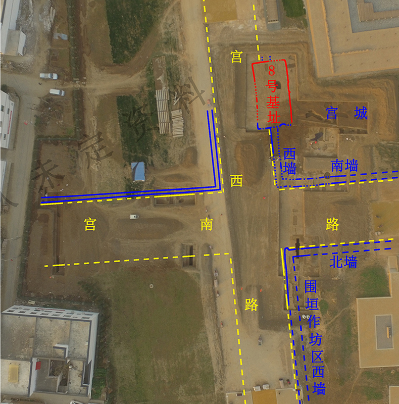 河南偃師二里頭遺址中心區(qū)“九宮格”式布局、“井”字形主干道路網(wǎng)絡(luò)面貌更加清晰,新發(fā)現(xiàn)宮殿區(qū)南、北兩側(cè)道路自宮西路向西延伸400余米,在宮西路以西新發(fā)現(xiàn)一條南北向的道路,道路兩側(cè)有墻垣,將二里頭遺址劃分為多個方正、規(guī)整的網(wǎng)格區(qū)域,多個網(wǎng)格內(nèi)均曾發(fā)現(xiàn)不同等級的建筑基址和墓葬,顯示出分區(qū)而居、區(qū)外設(shè)墻、居葬合一的結(jié)構(gòu)布局。
