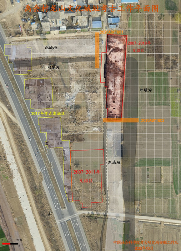 2020年禹會村龍山文化城址考古工作平面圖。匯報者供圖