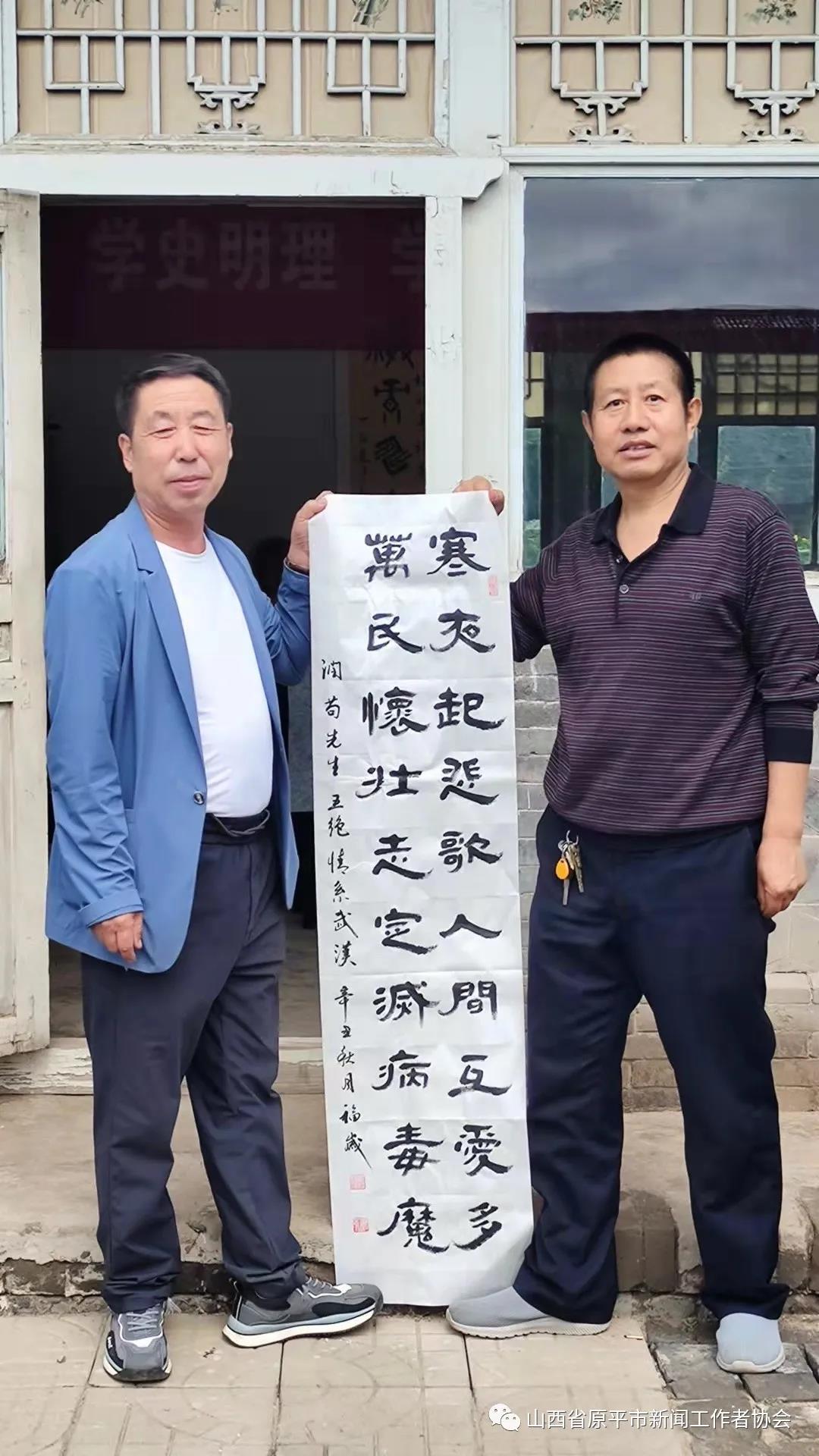 活動(dòng)現(xiàn)場(chǎng),大家暢所欲言,紛紛聯(lián)系思想實(shí)際,交流了學(xué)習(xí)黨史、明理知進(jìn)的心得體會(huì),圍繞學(xué)史長(zhǎng)知、學(xué)史明理、學(xué)史增信、學(xué)史興業(yè)進(jìn)行了熱烈討論。接著,書畫藝術(shù)組的書法家亢銀中、趙存仁、王玉伍、張正山、王福歲、王弘新,及學(xué)會(huì)顧問書畫名家溫樹森老師、以及特邀書畫名家李晉復(fù)先生,紛紛揮毫潑墨,書寫出學(xué)習(xí)黨史的感悟與名言。大筆揮灑中,一幅幅寫有“賡續(xù)精神血脈、傳承紅色基因”“明理增信.崇德力行”“不忘初心、牢記使命”和“江山就是人民、人民就是江山”等字樣的真、草、隸、篆、行書藝作品,從筆下飄然而出。墨香中呈現(xiàn)出各有千秋、韻味感人的風(fēng)格,博得觀賞者們的點(diǎn)贊稱道,并爭(zhēng)相拿到一幅贈(zèng)品。書法家們顧不上喝水,整整忙了一個(gè)上午。特別是書畫藝術(shù)組組長(zhǎng)李文光,由于平時(shí)在廣州忙于接送孩子上學(xué),放暑假回原平后特地趕來,高興地跟大家一起切磋書藝、展示才藝。書法家們還探討了書法藝術(shù)融入社會(huì)、融入黨性、服務(wù)大眾、服務(wù)中心的蹊徑、舉措與打算。(賈宣生 王福歲)