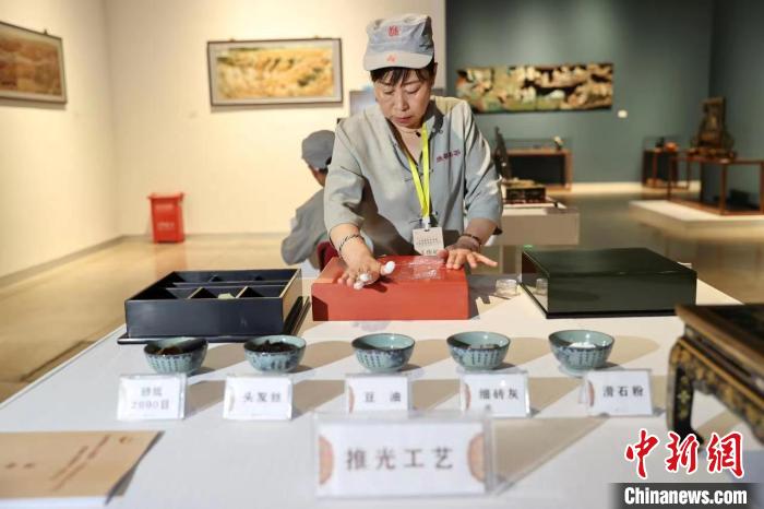 匠人在展示推光漆器工藝。(資料圖)張?jiān)茢z
