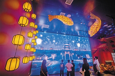 位于北京的瞭倉數(shù)字藏品博物館內(nèi),觀眾在以永定河生態(tài)為主題,展示動態(tài)畫作、實景照片和人工智能生成畫作的展廳里參觀。新華社記者 陳鐘昊攝