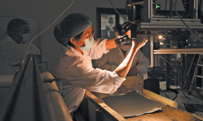 考古人員在實驗室,對三星堆出土文物進行高光譜掃描。廣漢市委宣傳部供圖