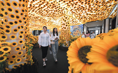 觀眾在天津數(shù)字藝術博物館全景數(shù)字藝術互動大展預展上參觀。新華社記者 孫凡越攝