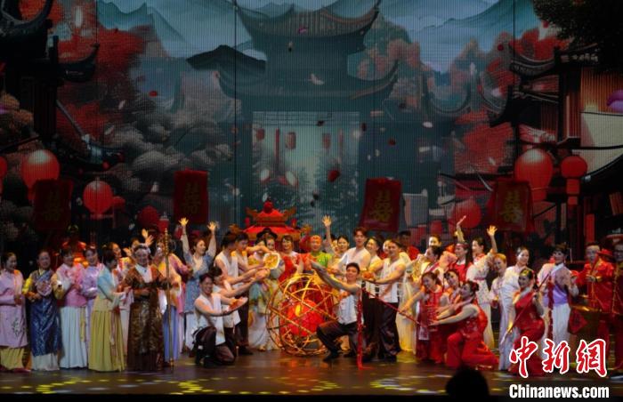 開幕式上,三林民俗表演隊(duì)、奉賢滾燈傳承人以民俗表演《婚緣》拉開了整場(chǎng)演出的序幕,隨后,觀眾的視角跟隨劇場(chǎng)秀主人公穿梭時(shí)空,三林龍獅隊(duì)、三林江南絲竹樂團(tuán),以及上海戲劇學(xué)院、怒江州民族文化工作團(tuán)、世博家園實(shí)驗(yàn)小學(xué)、上?;蒽`頓外籍人員子女學(xué)校等一一登場(chǎng),帶來了樂器、時(shí)裝秀、情景表演等,讓觀眾身臨其境地體驗(yàn)一場(chǎng)融匯古今的民俗文化傳承。