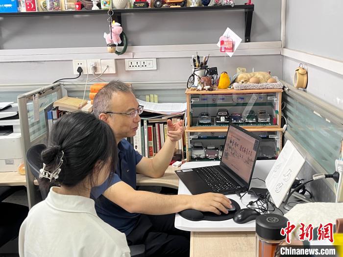 5月8日,江漢大學(xué)設(shè)計學(xué)院教授魏坤正在指導(dǎo)學(xué)生創(chuàng)作標(biāo)識。武一力攝
