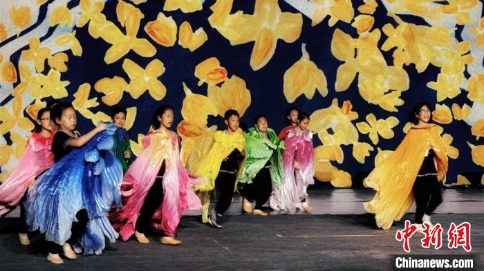 舞臺(tái)上的“百花仙子”是一個(gè)巨型偶,由孩子們操作進(jìn)行表演。不規(guī)則幕布懸于舞臺(tái)上方,層層疊疊,如山巒,如波濤;多媒體影像引入中國(guó)水墨畫(huà)風(fēng)格,又融入歐洲童話(huà)插畫(huà)般的熱烈色彩。演出中,孩子們還將首次挑戰(zhàn)使用高蹺進(jìn)行表演,經(jīng)過(guò)專(zhuān)業(yè)培訓(xùn)并定制專(zhuān)屬高蹺之后,小演員們現(xiàn)在已經(jīng)熟練掌握高蹺技巧,自如前進(jìn)后退,并能自己完成穿戴。