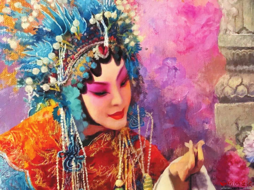 油畫(huà)作為一種西方獨(dú)特的藝術(shù)形式,從十五世紀(jì)開(kāi)始,歷經(jīng)數(shù)百年滄桑變遷和文藝思潮的起伏滌蕩,成為世界藝術(shù)長(zhǎng)廊中璀璨的瑰寶。而京劇,則在宋元以來(lái)中國(guó)戲曲的發(fā)展流變中,形成于清代乾隆年間。作為中華文化藝術(shù)的國(guó)粹,亦需要我們承接歷史,傳之后世。劉俊彪先生以西方藝術(shù)形式為載體,以中華國(guó)粹為精神,實(shí)現(xiàn)了空間上跨越中西的“雙流合抱”。
