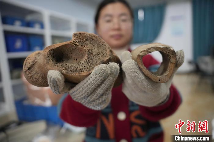 據(jù)中國(guó)人民大學(xué)歷史學(xué)院考古文博系從事科技考古研究的吳曉桐介紹,這次發(fā)現(xiàn)的牛、羊、馬、豬等動(dòng)物骨骼,很多有切割、打磨、鉆孔的加工痕跡,屬于骨器半成品,推測(cè)這些骨骼被用來制作骨器。