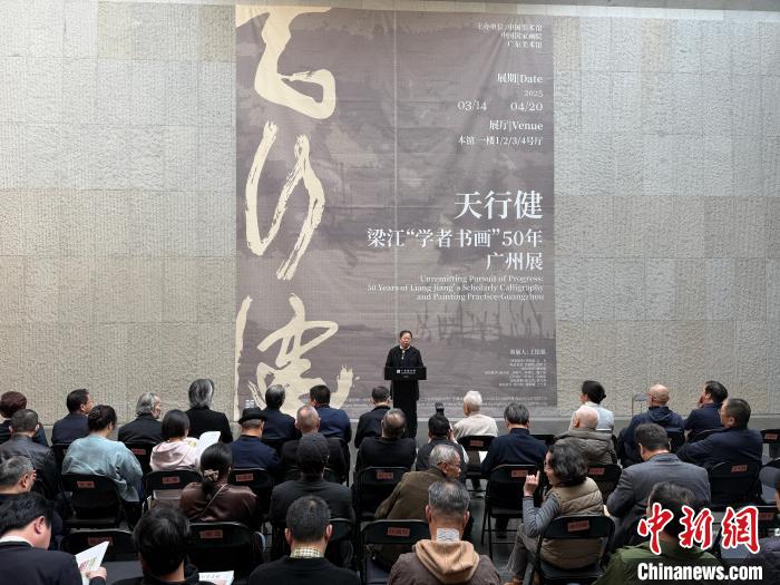 中新網廣州3月16日電 (記者 方偉彬)天行健——梁江“學者書畫”50年廣州展16日在廣東美術館開幕,活動由中國美術館、中國國家畫院、廣東美術館共同主辦。