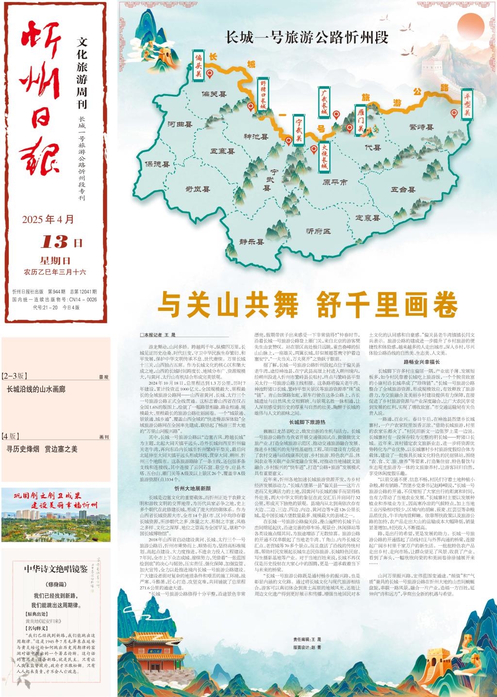 山河萬(wàn)里振興路,宏偉藍(lán)圖變通途。“顏值”和“氣質(zhì)”兼具的長(zhǎng)城一號(hào)旅游公路在忻州大地的山巒間蜿蜒盤(pán)旋,串聯(lián)一路風(fēng)景,融合一片產(chǎn)業(yè),造福一方百姓,延伸向“詩(shī)和遠(yuǎn)方”,孕育出全新的機(jī)遇與希望。(記者 王 晟)
