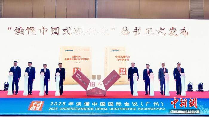 在2025年“讀懂中國”國際會議(廣州)上,與會嘉賓共同為新書揭幕。(主辦方供圖)