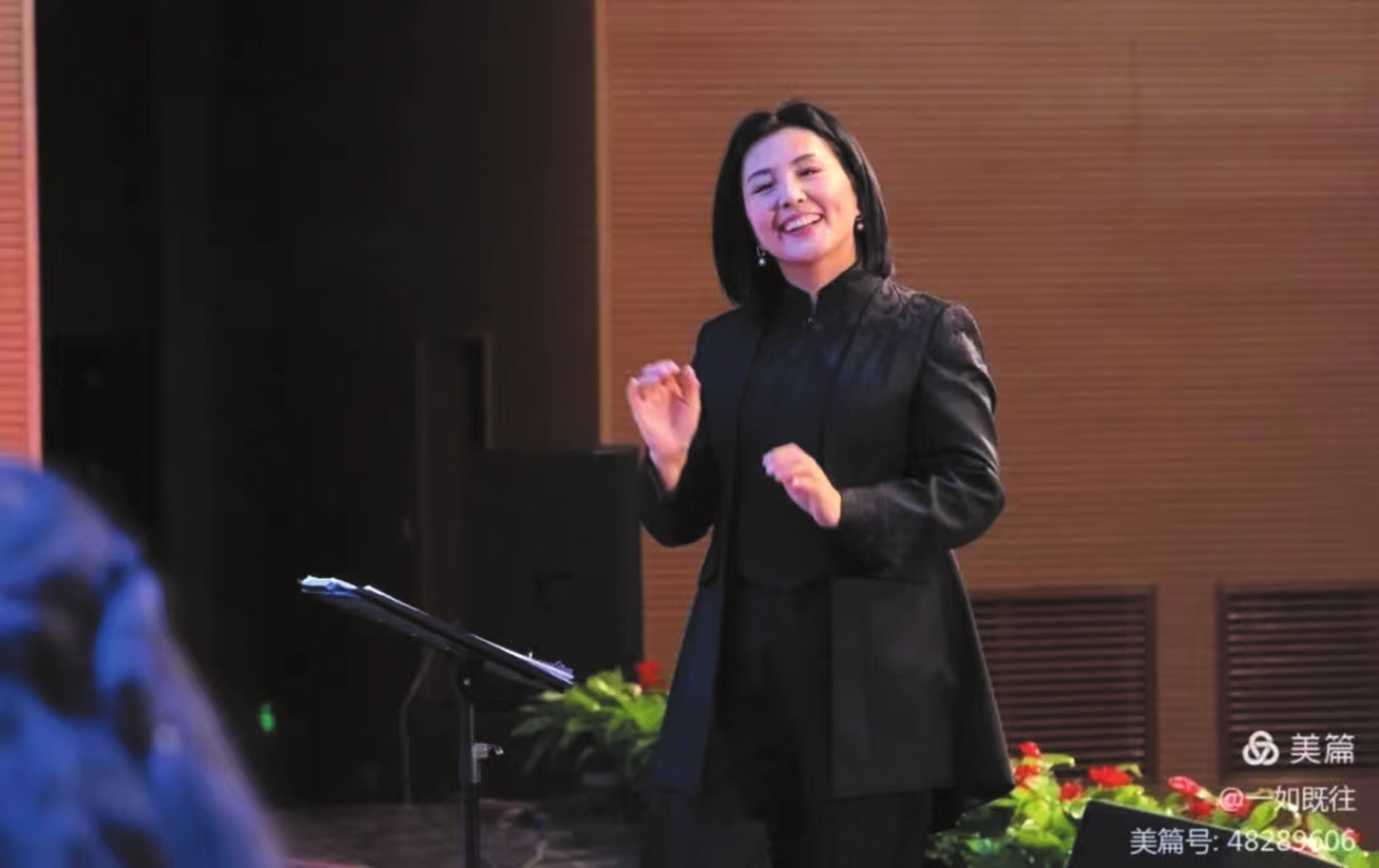 趙桂珍老師身著正裝,目光灼灼,舉手投足間盡顯專業(yè)風范。抬手示意預備,她的動作行云流水、起收自如,每一個指揮手勢、每一種情緒表達都極具感染力。成員們層次豐富的和聲如溪流匯聚,奔涌向前,從《九兒》的如泣如訴到《壯美延安》的恢宏壯闊,深情的余音未散,鏗鏘的旋律已奔涌而至。隨著最后一個音符落下,臺下掌聲久久不息。