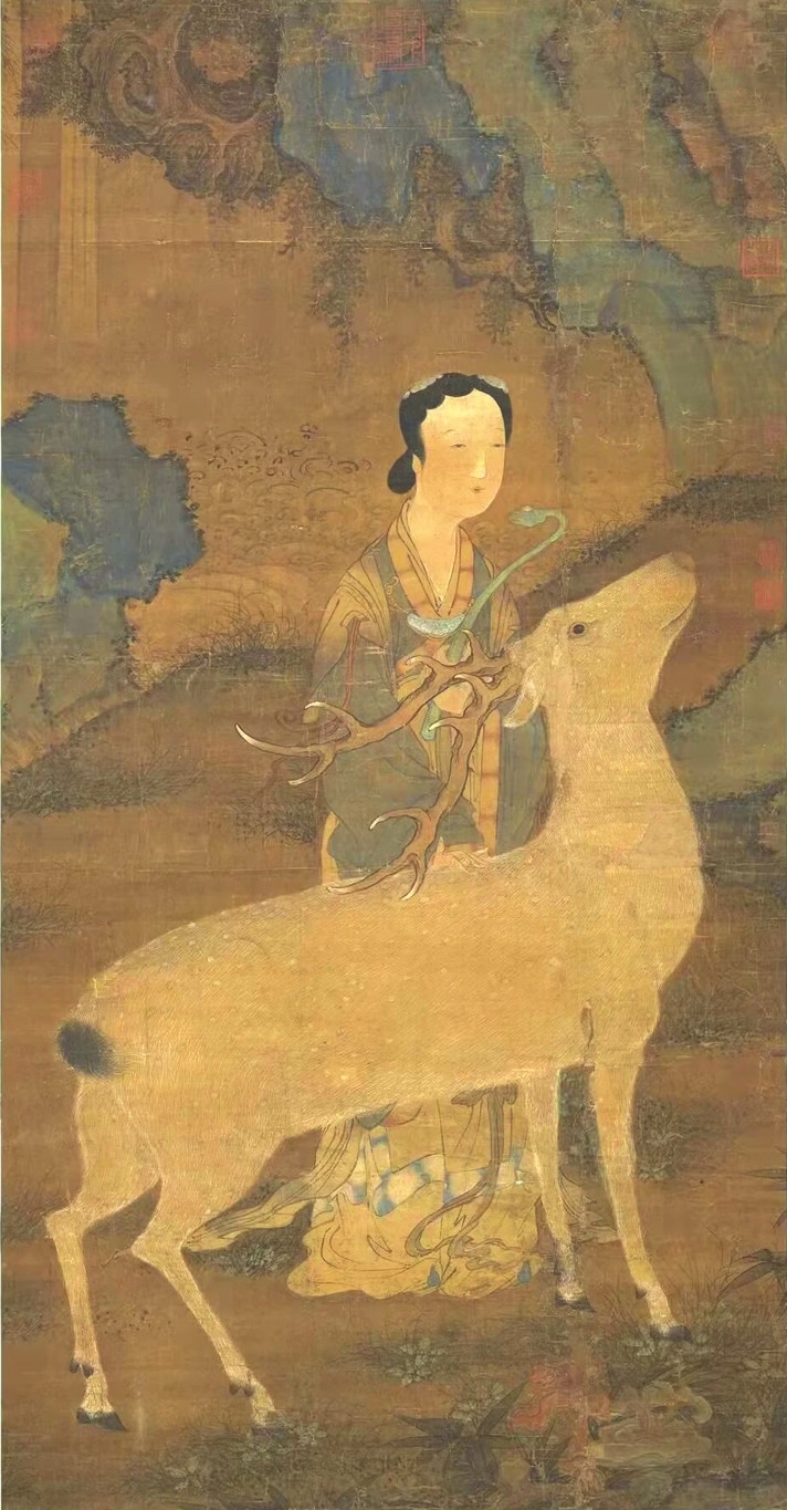 在傳統(tǒng)文化中,鹿是一種有神力的動(dòng)物,神話傳說中鹿往往是神仙的坐騎。李白一生尋仙問道,其《夢(mèng)游天姥吟留別》中有“且放白鹿青崖間,須行即騎訪名山”之名句。南極仙翁的白鹿,不僅被繪制在壽畫里,在文學(xué)中也大放異彩?!段饔斡洝分械陌茁咕褪菈坌悄蠘O仙翁的坐騎,偷得壽星的蟠龍拐杖后下凡為妖。在《白蛇傳》里,白娘子獨(dú)闖昆侖山,欲盜取起死回生的靈芝仙草,遭遇鶴、鹿二仙童阻攔。清代神魔小說《女仙外史》中的鹿童化為道人,下凡后為禍人間。屢破票房紀(jì)錄的動(dòng)畫電影《哪吒2》,其中的反派之一鹿童,是無(wú)量仙翁的大弟子,擔(dān)任捕妖隊(duì)頭領(lǐng),戲份頗重。