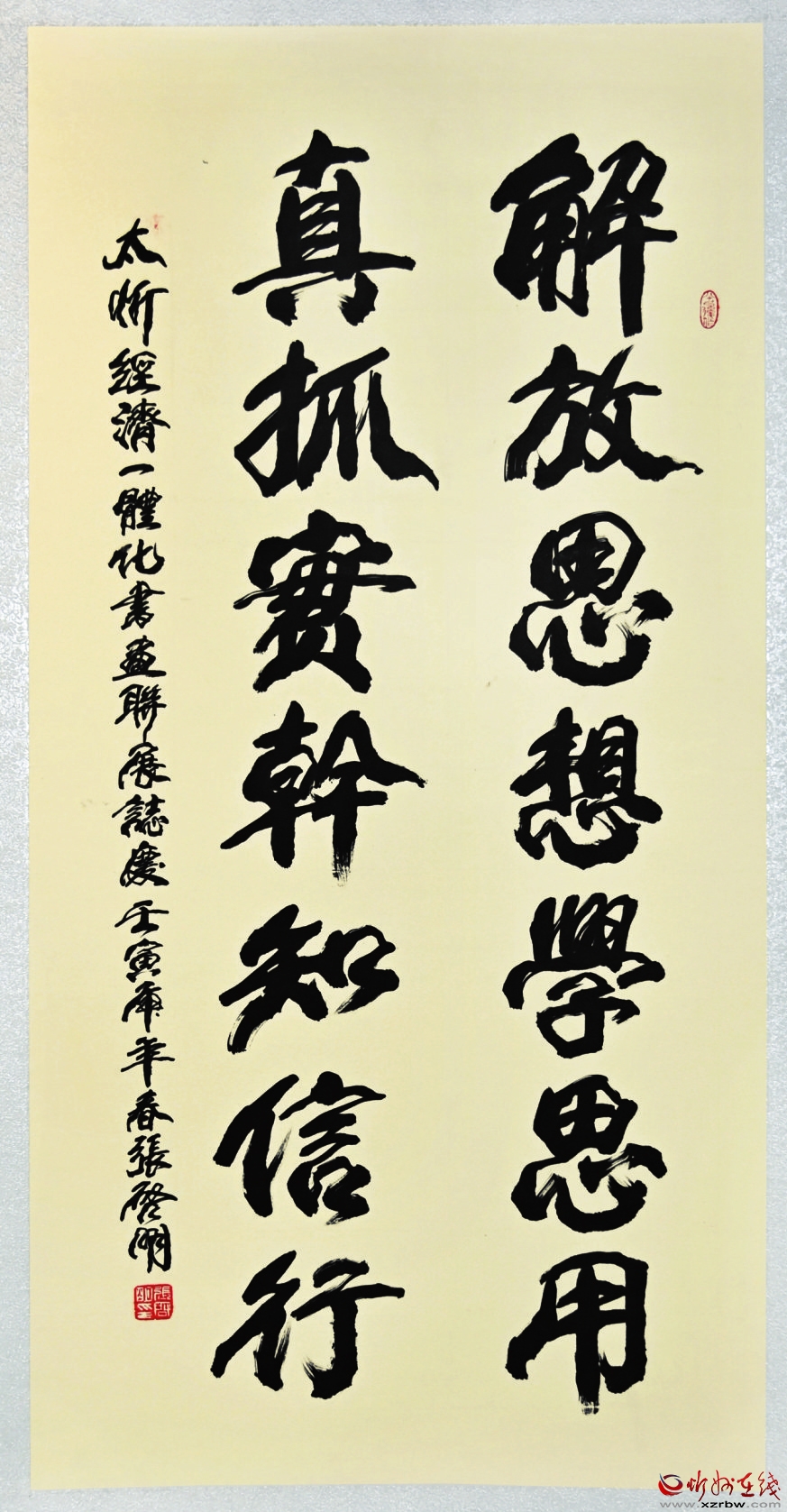 丹青吐彩,翰墨飄香。5月25目,由太原市委宣傳部、忻州市委宣傳部、山西省圖書館、太原市文聯(lián)、忻州市文聯(lián)共同主辦,太原市書法家協(xié)會(huì)、忻州市書法家協(xié)會(huì)承辦,助力“太忻經(jīng)濟(jì)一體化”發(fā)展——太原·忻州城市書法聯(lián)展在山西省圖書館拉開帷幕。