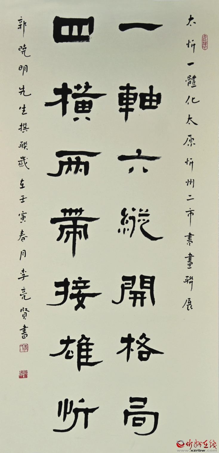 據(jù)悉,今年5月,忻州市文聯(lián)面向全市書畫界征集主題書畫作品,同時(shí)向書畫名家進(jìn)行約稿,征集書法作品271件,美術(shù)作品30件。經(jīng)過公正嚴(yán)格組織評(píng)選,最后入選展覽作品80余件。作品藝術(shù)形式多樣,諸體兼?zhèn)?,?gòu)思新穎,具有較高的思想性與藝術(shù)性,從書法繪畫的視野,展現(xiàn)出太忻一體化經(jīng)濟(jì)區(qū)建設(shè)的進(jìn)程,充盈著高雅的藝術(shù)格調(diào)和鮮活的時(shí)代氣息。