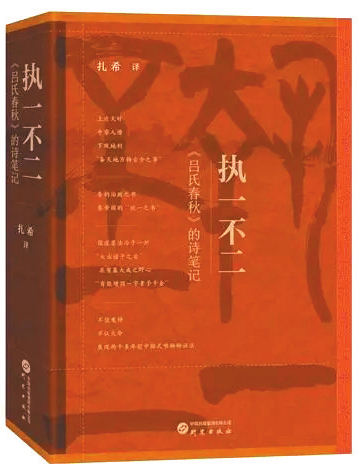 讓古籍里的文字活起來,離不開一項(xiàng)項(xiàng)具體而又有創(chuàng)造性的工作?!秷?zhí)一不二:〈呂氏春秋〉的詩筆記》(研究出版社出版)一書選擇《呂氏春秋》這樣一部先秦重要典籍作為切入點(diǎn)。呂不韋在秦莊襄王、秦王嬴政時期為相13年,根據(jù)《史記》記載,為了讓秦更強(qiáng)大,呂不韋招食客三千人,“使其客人人著所聞,集論以為八覽、六論、十二紀(jì),二十余萬言,以為備天地萬物古今之事,號曰《呂氏春秋》”。書成之后,呂不韋命人將書“布咸陽市門,懸千金其上,延諸侯游士賓客有能增損一字者予千金”,“一字千金”的典故由此而來,可見呂不韋對此書思想和文字的自信。