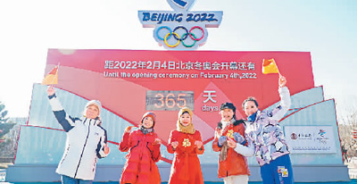 2月4日,河北張家口經(jīng)開區(qū)的市民共同慶祝2022北京冬奧會開幕倒計(jì)時一周年。畢瑞翔攝(人民視覺)