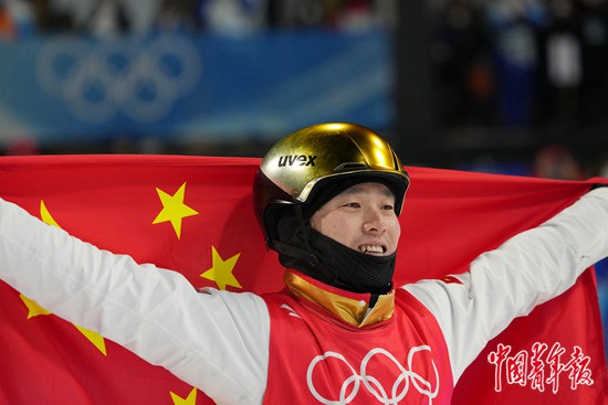 本報河北崇禮2月16日電(中青報·中青網(wǎng)記者 梁璇)滑行、起跳、旋轉、落地,32歲的齊廣璞今晚首次在冬奧賽場上順利完成了向后翻騰三周轉體1800度,這個難度系數(shù)高達5.0的動作讓他以129.00分的成績奪得自由式滑雪男子空中技巧冠軍。
