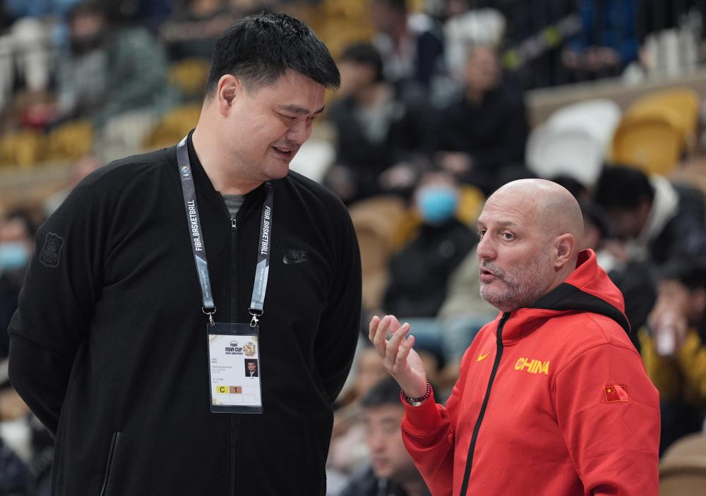 圖為2024年2月22日,在國(guó)際籃聯(lián)2025男籃亞洲杯預(yù)選賽賽前,時(shí)任中國(guó)隊(duì)主教練喬爾杰維奇(右)與中國(guó)籃協(xié)主席姚明交流。新華社記者 孟永民 攝