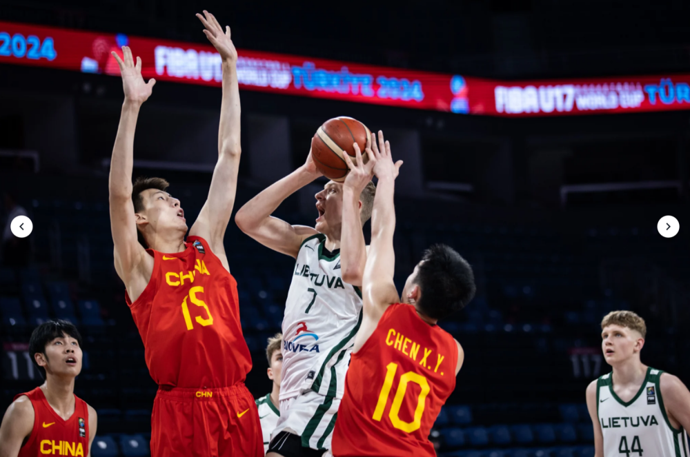 立陶宛隊在第二節(jié)打出進攻高潮,一度以39:24領先。此后,中國隊頑強追趕,在第三節(jié)快結束時將分差縮小。