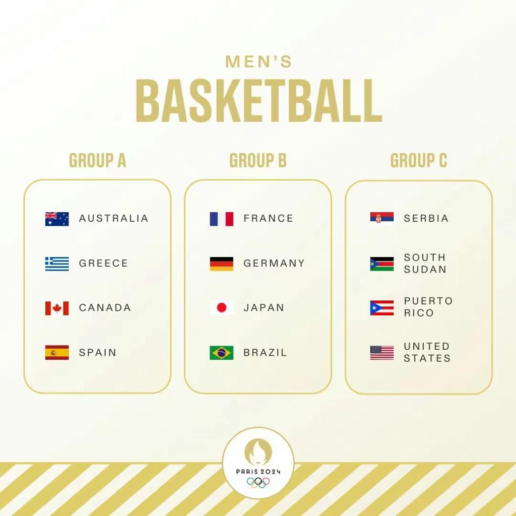 巴黎奧運(yùn)會(huì)丨男籃分組揭曉