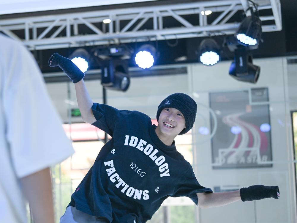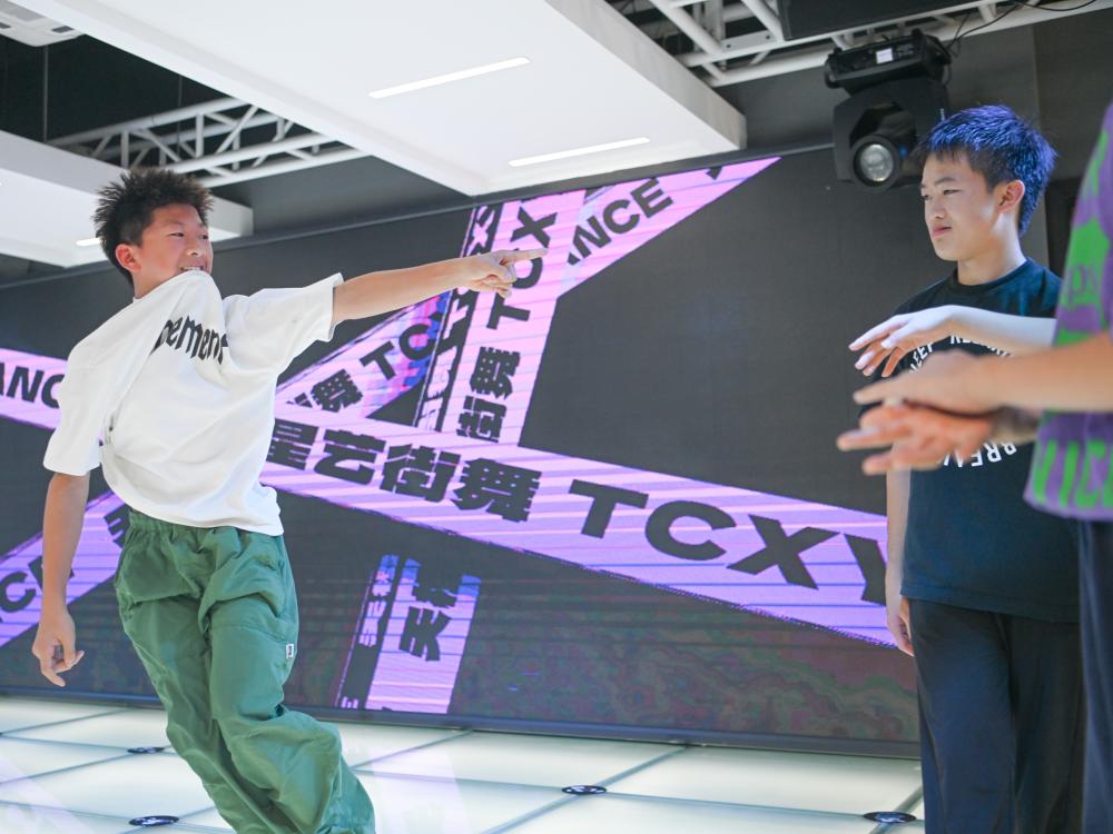 7月16日,張哲瀚(左一)在練習(xí)霹靂舞。新華社記者 王曦 攝