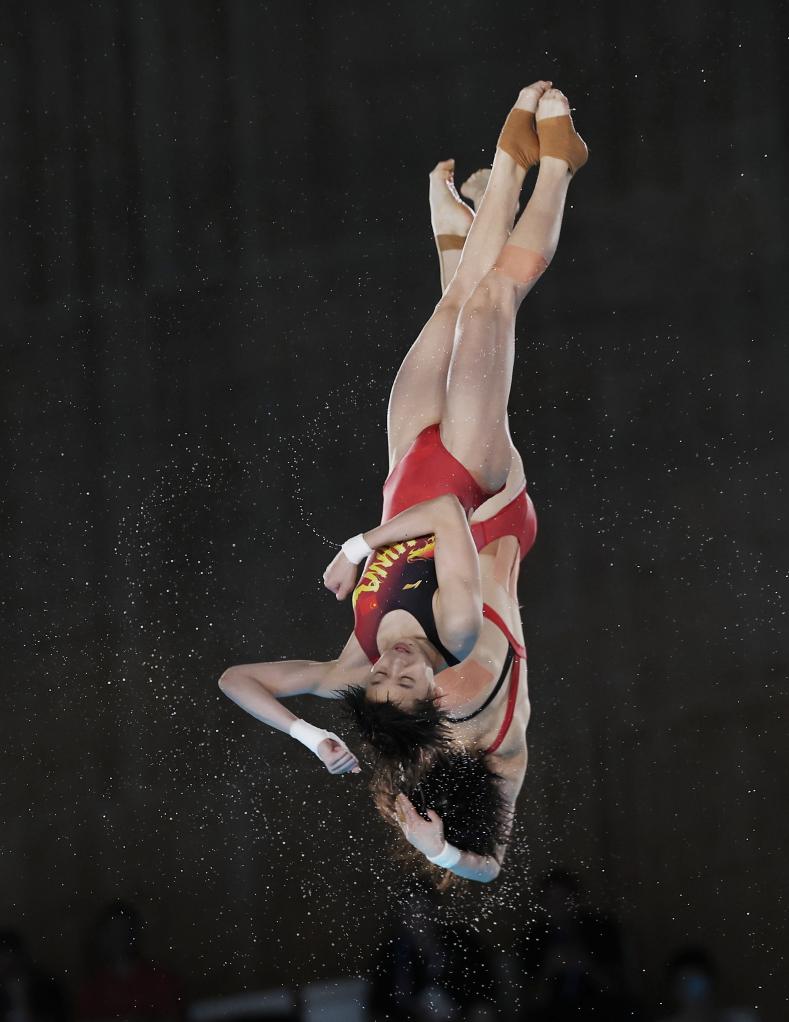 7月31日,中國選手陳芋汐/全紅嬋(前)在比賽中。新華社記者 李穎 攝