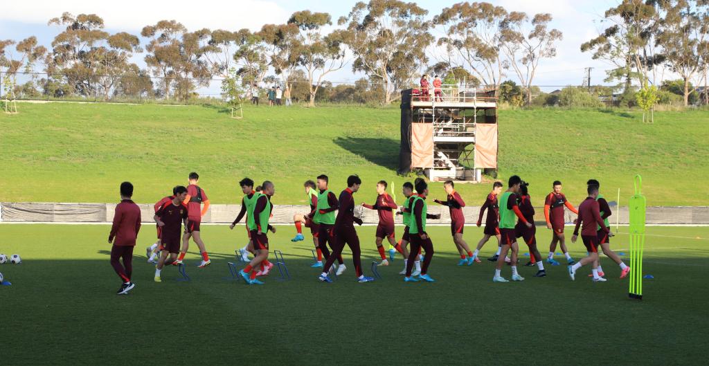 當(dāng)天的訓(xùn)練場(chǎng)距離中國(guó)隊(duì)下榻的酒店有10公里,訓(xùn)練從下午六點(diǎn)開始,持續(xù)了大約一個(gè)半小時(shí)。與前一天下午抵達(dá)后進(jìn)行的恢復(fù)性訓(xùn)練不同,主教練伊萬(wàn)科維奇帶領(lǐng)球隊(duì)按照比賽要求,進(jìn)行了排兵布陣和戰(zhàn)術(shù)演練。