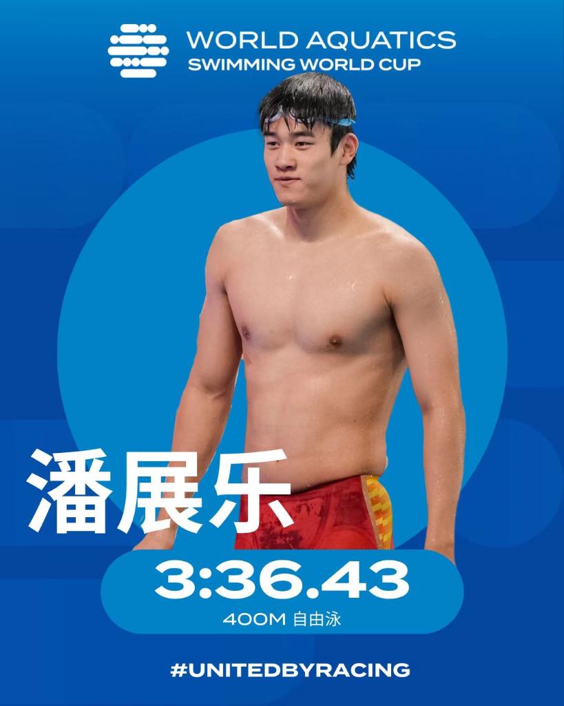 在男子400米自由泳決賽中,潘展樂(lè)采取最后100米沖刺的方式強(qiáng)力反超其他選手,以3分36秒43的個(gè)人最好成績(jī)力拔頭籌,并達(dá)到參加年底布達(dá)佩斯短池世錦賽該項(xiàng)目的成績(jī)A標(biāo)。
