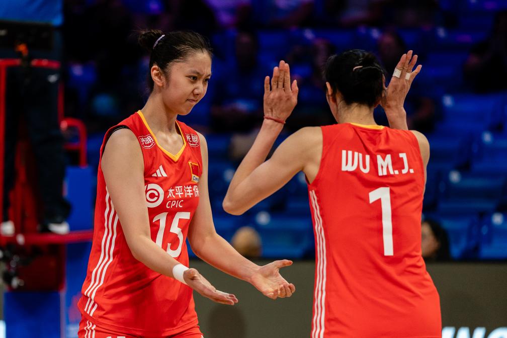 決定勝負(fù)的第五局,中國隊(duì)一度以10:7領(lǐng)先,但多米尼加隊(duì)追至13平。面對令人屏息的局末關(guān)鍵分,中國隊(duì)干脆利落連得兩分,以15:13笑到最后。