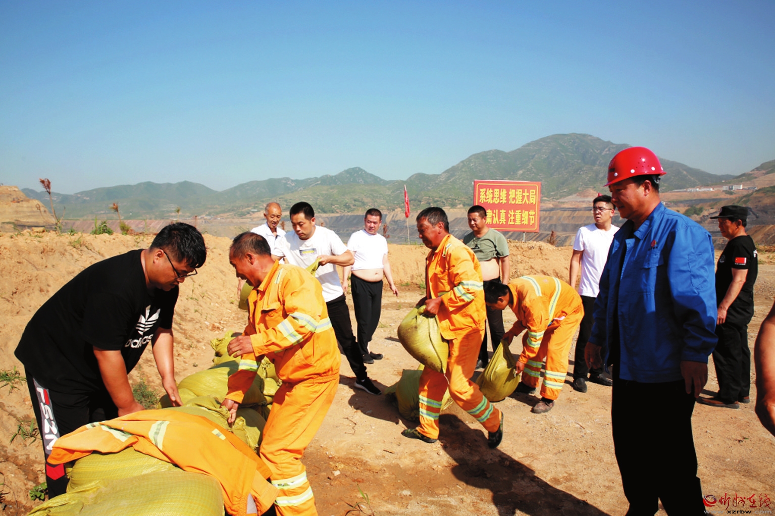 常態(tài)化組織相關(guān)人員對露天煤礦采坑、排土場及上游泄洪通道進(jìn)行全方位巡察,對可能發(fā)生阻塞河道的地段進(jìn)行加固引流,及時進(jìn)行了疏通。沿露天采坑周邊構(gòu)筑攔水壩,對河流積水進(jìn)行引流,確保安全度汛。圖為應(yīng)急演練現(xiàn)場。 (高文進(jìn))