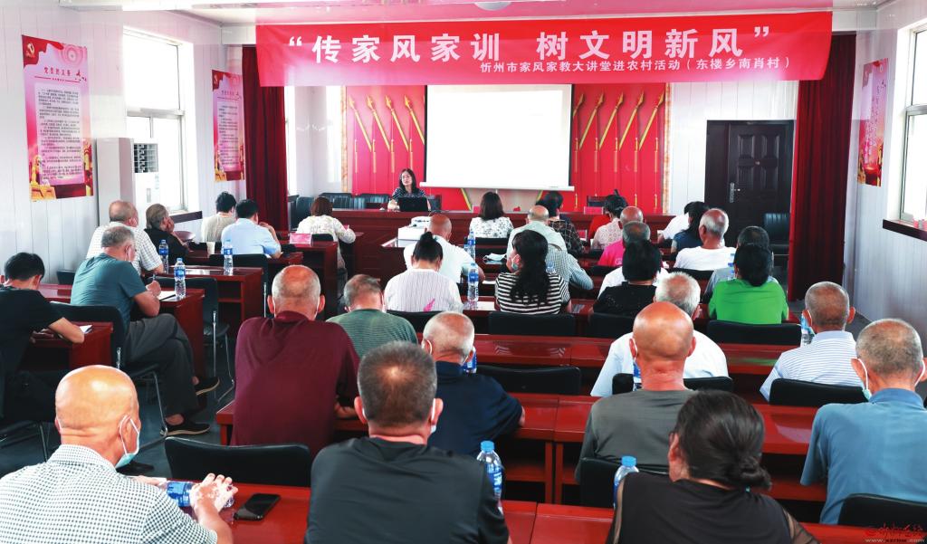 為大力弘揚(yáng)優(yōu)良家風(fēng)家訓(xùn),推動(dòng)家庭美德建設(shè),讓社會(huì)主義核心價(jià)值觀在家庭里生根、在親情中升華,近日,忻府區(qū)南肖村以“傳家風(fēng)家訓(xùn)、樹(shù)文明新風(fēng)”為主題的大講堂開(kāi)講。( 張存良 攝