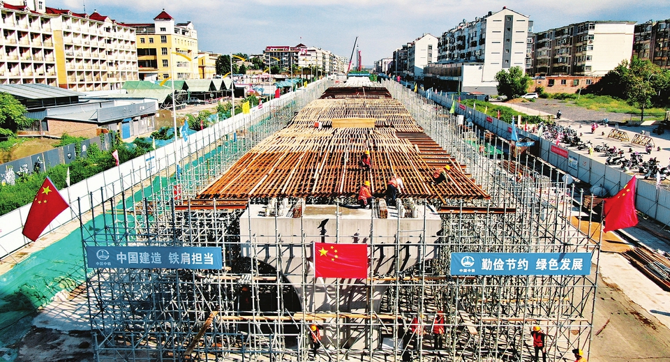 10月2日,臨汾市五一路快速通道工程西段,施工人員全力奮戰(zhàn),模板支撐體系的搭建已初步成型。據(jù)了解,施工人員將利用國慶假期,完成200米的模板支撐體系的搭建工作,用辛勤的勞動和舞動的青春為城市發(fā)展添磚加瓦。(本報記者 王瑞瑞 攝)