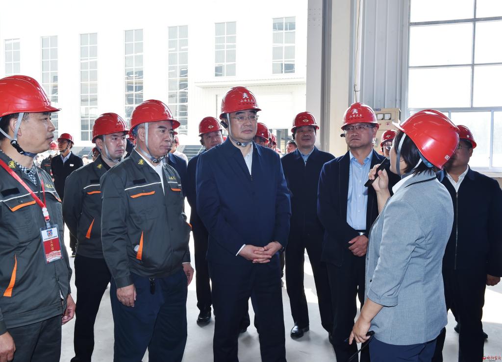 在山西眾立法蘭有限公司觀摩檢查新建鋁合金軋制-旋壓一體成型生產線項目建設情況。馮曉磊 攝