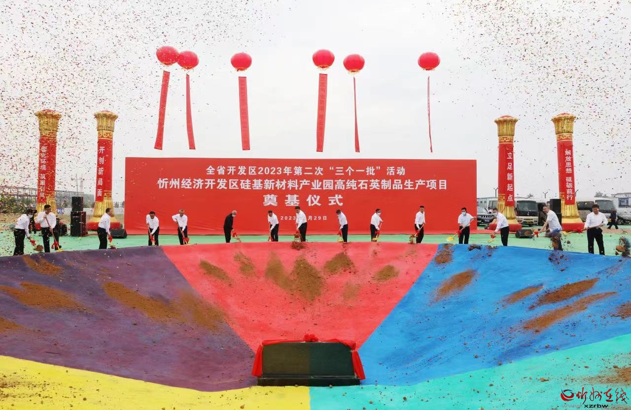 與省主會場同步,李建國主持舉行了忻州市“簽約一批”代表項(xiàng)目集中簽約活動(dòng)。忻州經(jīng)濟(jì)開發(fā)區(qū)特種硅基新材料智能生產(chǎn)項(xiàng)目、原平經(jīng)濟(jì)技術(shù)開發(fā)區(qū)污廢水處理環(huán)保成套設(shè)備及配套產(chǎn)品生產(chǎn)項(xiàng)目、繁峙經(jīng)濟(jì)技術(shù)開發(fā)區(qū)15萬千瓦光伏發(fā)電項(xiàng)目、定襄經(jīng)濟(jì)技術(shù)開發(fā)區(qū)無憂(山西)數(shù)字金融產(chǎn)業(yè)園項(xiàng)目、岢嵐經(jīng)濟(jì)技術(shù)開發(fā)區(qū)宇航固體動(dòng)力岢嵐試驗(yàn)中心項(xiàng)目、靜樂現(xiàn)代農(nóng)業(yè)產(chǎn)業(yè)示范區(qū)羊肚菌研發(fā)種植推廣實(shí)驗(yàn)基地建設(shè)項(xiàng)目、神池現(xiàn)代農(nóng)業(yè)產(chǎn)業(yè)示范區(qū)太平莊生態(tài)養(yǎng)殖示范基地建設(shè)項(xiàng)目、五臺現(xiàn)代農(nóng)業(yè)產(chǎn)業(yè)示范區(qū)植物蛋白飲品及休閑食品生產(chǎn)項(xiàng)目、五寨現(xiàn)代農(nóng)業(yè)產(chǎn)業(yè)示范區(qū)大辛莊繁育場項(xiàng)目、偏關(guān)生態(tài)文化旅游示范區(qū)生態(tài)農(nóng)業(yè)建設(shè)項(xiàng)目等10個(gè)代表項(xiàng)目分兩批進(jìn)行現(xiàn)場簽約。簽約儀式結(jié)束后,與會人員赴“開工一批”代表項(xiàng)目——“硅基新材料產(chǎn)業(yè)園高純石英制品生產(chǎn)建設(shè)項(xiàng)目”現(xiàn)場培土奠基。隨后赴重點(diǎn)建設(shè)項(xiàng)目——“10GW智能光伏電池生產(chǎn)基地項(xiàng)目”實(shí)地觀摩,該項(xiàng)目聚焦“奮戰(zhàn)7.30、8.30、9.28”目標(biāo),分階段確保項(xiàng)目竣工投產(chǎn)。