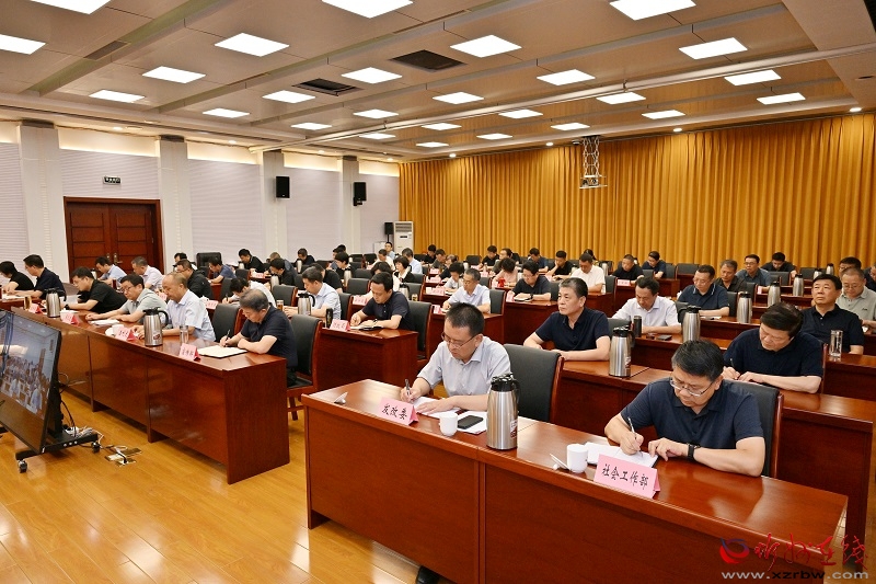 會議會場。馮曉磊攝 7月12日,全市鞏固拓展脫貧攻堅成果同鄉(xiāng)村振興有效銜接問題整改部署暨工作推進會召開,深入學習貫徹習近平總書記重要講話重要指示精神,全面貫徹落實省相關(guān)會議部署和市委常委會會議安排,進一步增強責任感、危機感和緊迫感,扎扎實實,動真碰硬,抓好國考省考反饋問題整改,推動鞏固拓展脫貧攻堅成果上臺階,鄉(xiāng)村全面振興見實效,為全市高質(zhì)量發(fā)展提供有力支撐。 市委書記朱曉東出席并講話,市委副書記、市長李建國主持會議。市委副書記、統(tǒng)戰(zhàn)部部長劉卓良通報2023年度省市鞏固銜接考核發(fā)現(xiàn)問題,解讀全市鞏固銜接考核評估反饋問題整改工作方案。市領(lǐng)導溫建軍、崔崢嶺出席。 會議強調(diào),鞏固拓展脫貧攻堅成果同鄉(xiāng)村振興有效銜接,是以習近平同志為核心的黨中央作出的重大決策部署,是各級黨委政府必須扛牢的重大政治任務(wù)。今年是我市鞏固銜接工作最吃勁的一年,當前鞏固銜接工作中的短板弱項需要大家統(tǒng)籌施策、精細補短。各級各部門要始終保持政治清醒、思想清醒、工作清醒,在站位上更加堅定自覺,在認識上更加清醒警醒,在工作上更加用心用力,堅決扛牢鞏固銜接政治責任,堅決把國考省考整改工作作為大事要事牢牢抓在手上,嚴肅認真負責地抓出成績,干出成效。要持續(xù)發(fā)力補短強弱,舉一反三抓排查、分類施策促整改、常態(tài)長效建機制,全面深入抓好問題整改。要不斷強化精準攻堅,慎終如始抓好脫貧成果鞏固,多措并舉抓好農(nóng)民穩(wěn)定增收,因地制宜抓好鄉(xiāng)村產(chǎn)業(yè)發(fā)展,穩(wěn)步有序抓好和美鄉(xiāng)村建設(shè),統(tǒng)籌推動重點工作提質(zhì)增效。同時要全力以赴抓好防汛抗旱工作,堅決貫徹落實糧食安全黨政同責,將抗旱工作放在心上、抓在手上,扎實做好防汛搶險救災各項準備工作,特別是要盯牢盯好重點區(qū)域、重點環(huán)節(jié),統(tǒng)籌調(diào)動調(diào)配人、財、物,嚴格按照預報、預警、預演、預案“四預”要求,確保人民群眾生命財產(chǎn)安全。鞏固銜接、鄉(xiāng)村振興需要各縣(市、區(qū))、各行業(yè)部門同心協(xié)力、同頻共振。各級各部門都要牢固樹立“一盤棋”思想,堅持橫向聯(lián)動、縱向貫通,責任鏈條要再擰緊,調(diào)度指導要再抓實,督導問效要再提標,工作作風要再壓實,集聚資源要素,強化保障支撐,真正以問題整改引領(lǐng)工作提升,以工作提升助力問題整改,凝聚強大的鄉(xiāng)村振興工作合力。