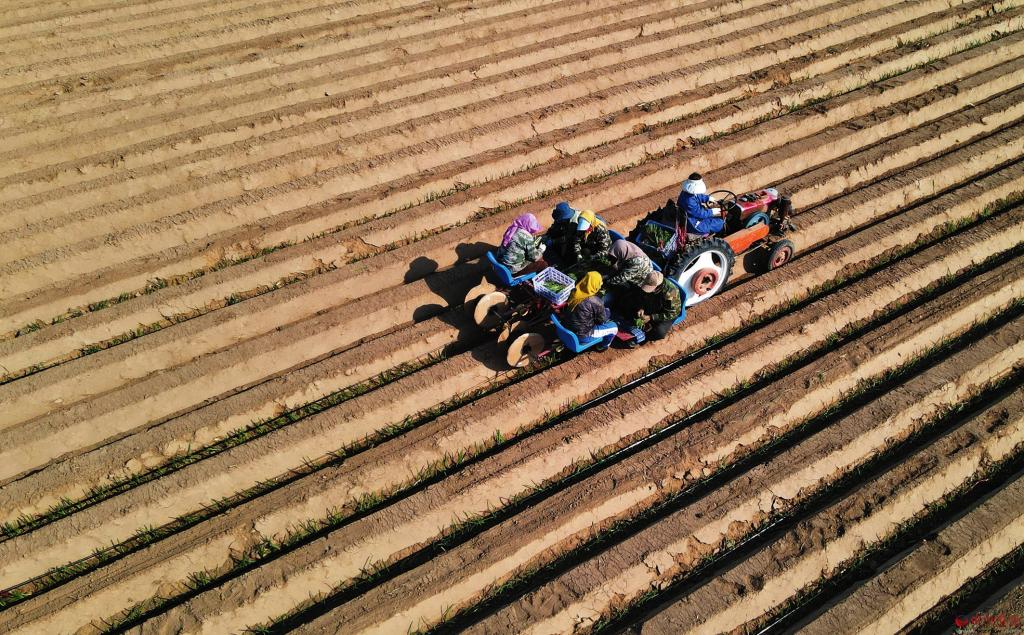 3月30日,在忻府區(qū)解原村的農(nóng)田里,村民利用晴好天氣搶種大蔥,機(jī)械人工齊上陣,田間地頭一片忙碌景象。(張存良 攝