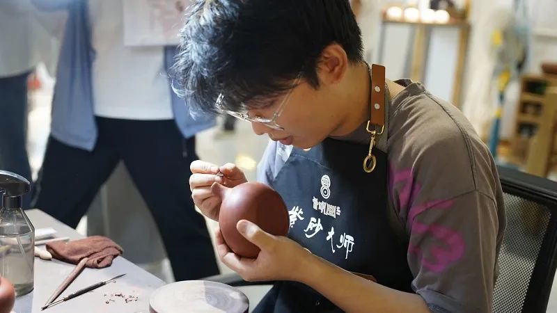 在砂器(紫砂)文化示范區(qū)的山西晉明堂文化科技有限公司(以下簡稱晉明堂),一位年輕人正熟練地運(yùn)用各種工具給手里的紫砂壺進(jìn)行壺嘴部分的制作。他叫穆清,今年剛20歲出頭的他,耳濡目染父親對(duì)紫砂文化的熱愛,也對(duì)這一行業(yè)產(chǎn)生了濃厚的興趣,決心將平定紫砂文化傳承發(fā)揚(yáng)下去。