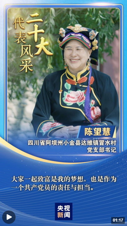 “二十大代表風(fēng)采”一起來(lái)認(rèn)識(shí)四川省阿壩州小金縣達(dá)維鎮(zhèn)冒水村黨支部書記陳望慧。